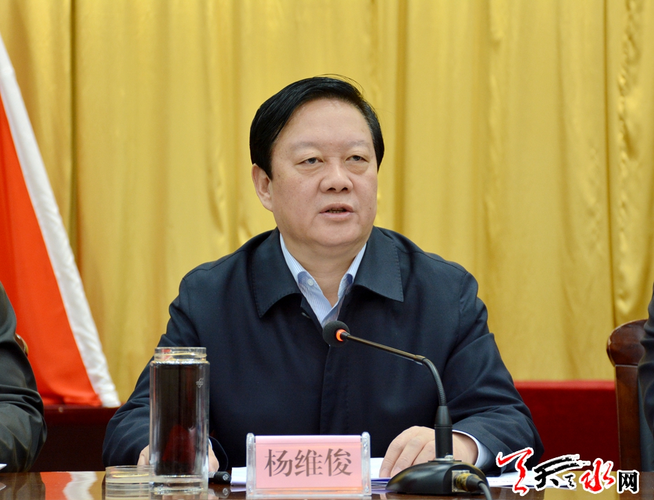 杨维俊强调,全市各级各部门要始终牢牢扭住问题导向,聚焦五大发展新理念,对标“八个着力”指示要求,全面梳理分析制约发展的矛盾问题,重点在破解难题、补齐短板上下功夫,不断增强经济社会发展的新动能。一要突出产业发展,更加注重转方式调结构,着力补齐经济发展短板,加快产业结构调整步伐,落实“三去一降一补”任务,着力发展壮大县域经济。二要突出项目建设,更加注重破瓶颈增后劲,着力补齐基础设施短板,继续发挥好项目带动作用和投资拉动作用,积极争取实施一批交通、水利、信息和城建重点项目,完善城市服务功能,努力改善城乡基础条件。三要突出创新驱动,着力补齐科技创新短板,加快构建以企业为主体、市场为导向、产学研相结合的科技创新体系,发挥好企业当主角、政府搞服务、万众齐创新三个方面作用,不断增强科技创新能力。四要突出精准施策,改善基本条件夯实脱贫基础,着力补齐脱贫攻坚短板,发展富民产业强化脱贫支撑,整合项目资金保障脱贫投入,完善推进机制确保脱贫质量,扎实推进精准扶贫精准脱贫工作。五要突出环境治理,始终把生态建设和环境保护放在突出重要的位置,更加注重强措施严管理,坚定不移地打好大气、水、土壤污染防治“三大战役”,更加自觉地推动绿色发展、循环发展、低碳发展,努力使天水的天更蓝、地更绿、水更清、空气更清新、环境更优美。六要突出共建共享,更加注重保基本兜底线,着力补齐民生领域短板。牢固树立共建共享的理念,统筹推进经济发展和民生改善,将新增财力更多地用于民生事业,将公共资源更多地向基层倾斜,提高实事办理满意度,推进公共服务均等化,扩大社会保障覆盖面,织牢维护稳定安全网,让改革发展成果更多更好地惠及全市人民。