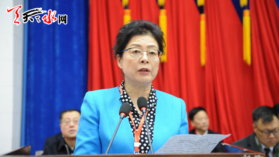 兰州交通大学党委书记王萍代表兄弟院校致辞。大会执行主席、天水师范学院党委书记马建东主持大会。