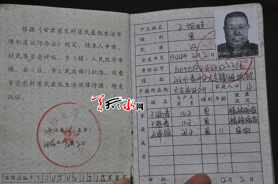 待爆料人讲述完这个家庭的不幸遭遇后,王坝娃老人从抽屉里找出了低保证书和大儿子的残疾证,他一边翻看一边似乎自言自语的说到:娃娃都是好娃娃,就是病把他们害成这样了,干不了活,挣不了钱,日子过得真格紧张,好在政府和村上、镇上的干部好,对我们很照顾,有啥好政策都先给我们给,眼下日子还能过下去,可是我老了,假如有一天我死去了,两个娃娃都不会做饭,谁来照顾他们啊!