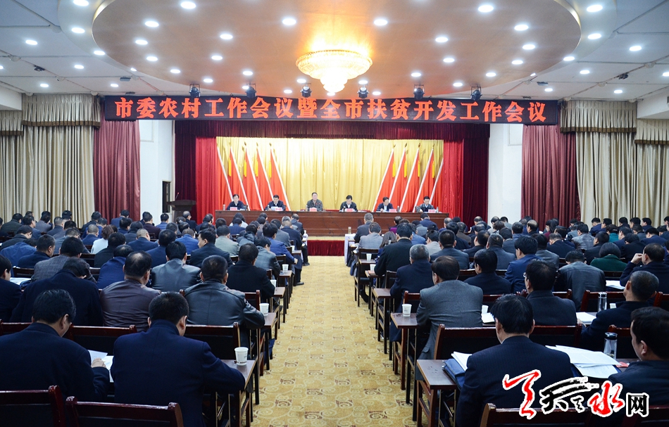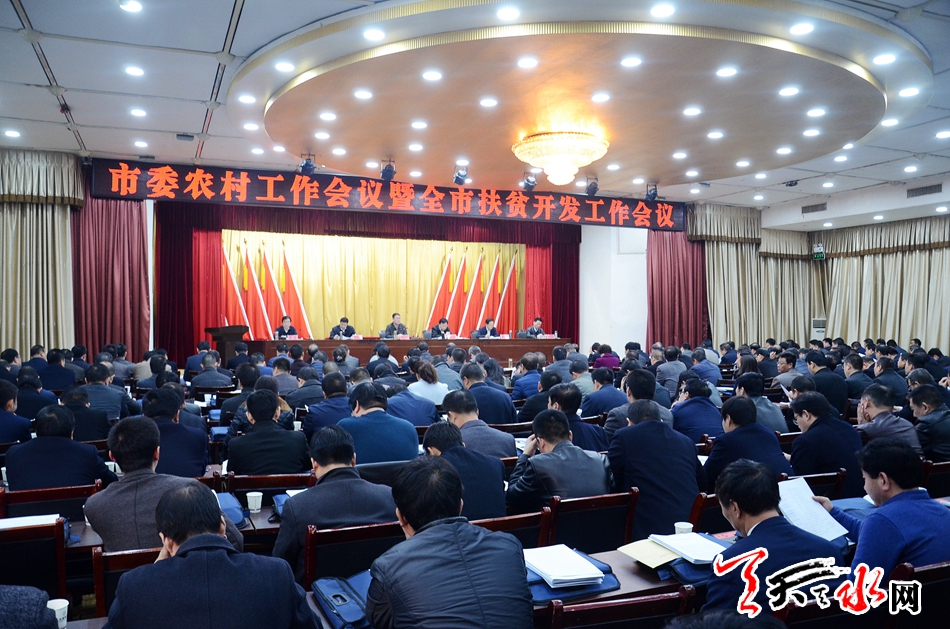 天天天水网讯【记者童强】3月13日,市委农村工作会议暨全市扶贫开发工作会议召开,全面贯彻落实中央、省委农村会议和全省扶贫开发工作会议精神,传达市委书记王锐、市长杨维俊对全市农业农村工作的批示,总结2016年全市农业农村和扶贫开发工作,分析全市农业农村工作面临的形势,交流经验做法,安排部署2017年全市农业农村和扶贫开发工作任务。