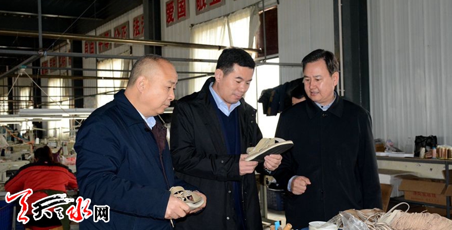 ↑在甘谷县大漠行麻编鞋业有限公司调研