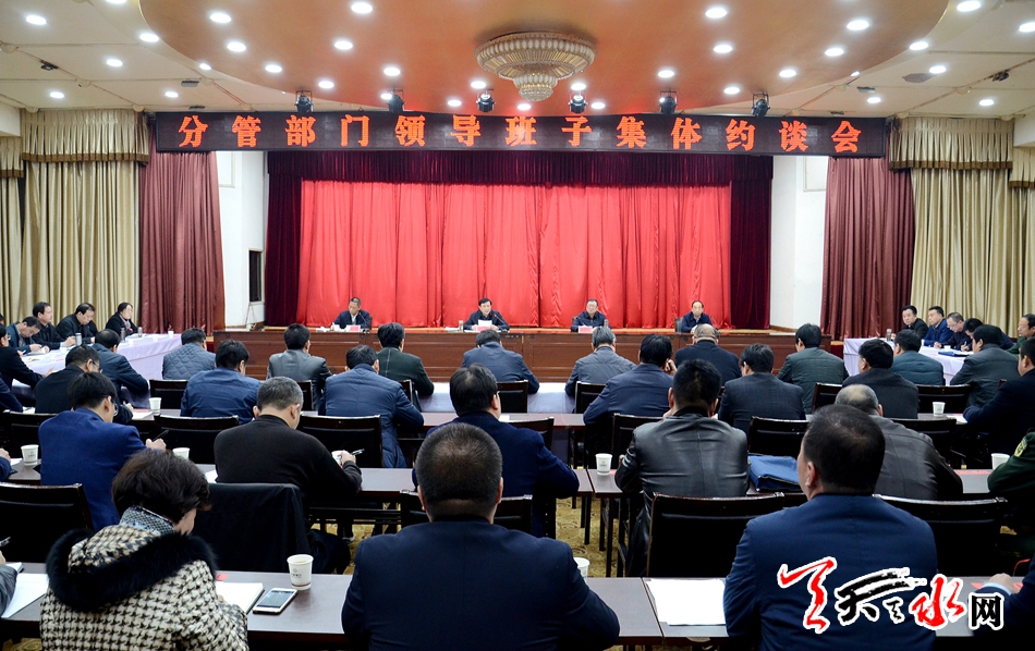 天天天水网讯【记者赵晓玲】3月20日,市委常委、常务副市长赵卫东召开分管部门领导班子集体约谈会,学习中共甘肃省委关于中央第三巡视组开展巡视“回头看”情况反馈意见的整改落实方案,传达市县主要领导干部研讨班精神,对分管部门领导班子进行全面从严治党主体责任集体约谈,推动中央、省、市委各项决策部署全面落实。