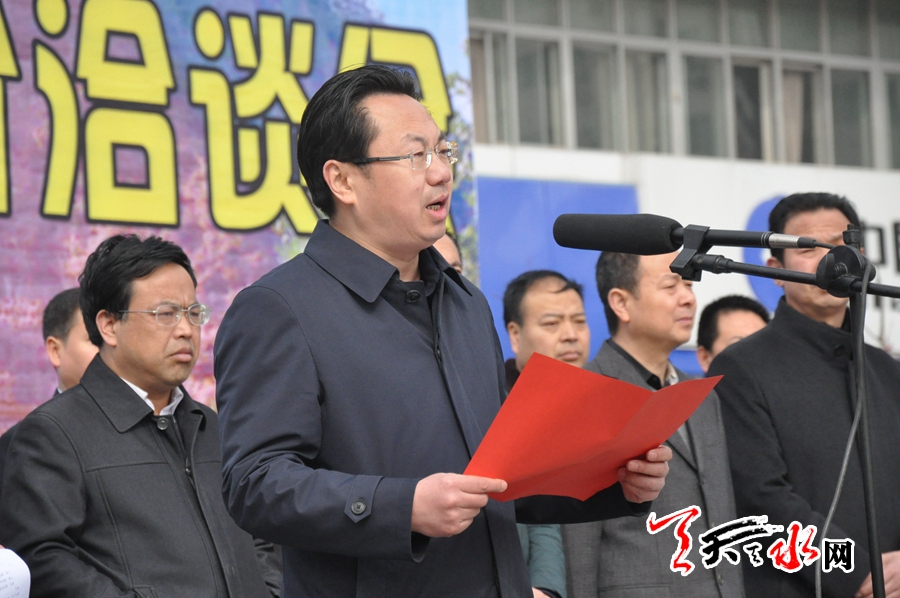天水市人大常委会副主任宋建平、市政府副市长何东、市政协副主席屈光平及市直相关部门分管领导、各县区代表、企业代表出席洽谈会。
