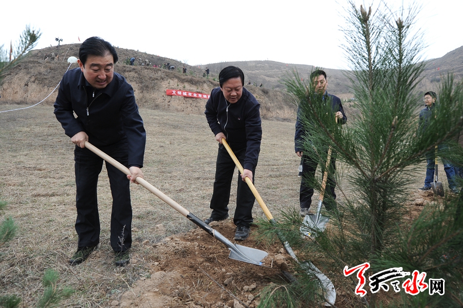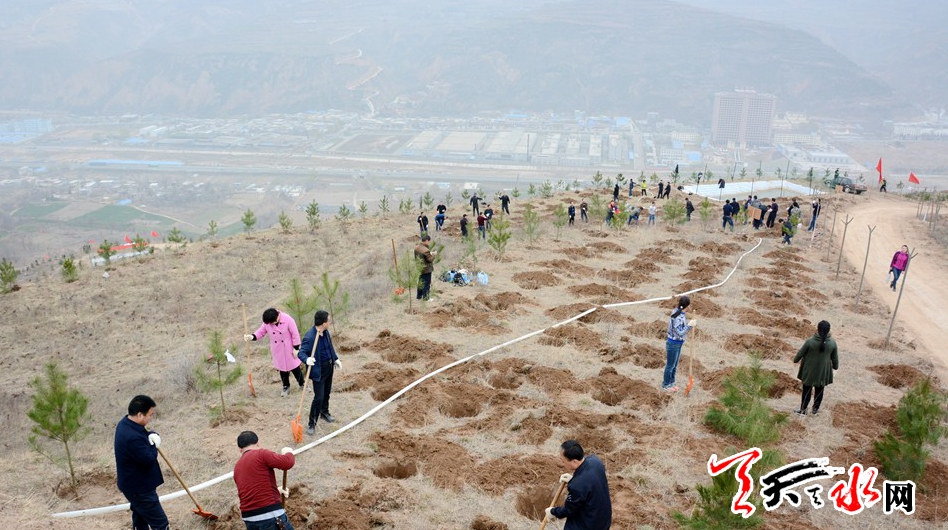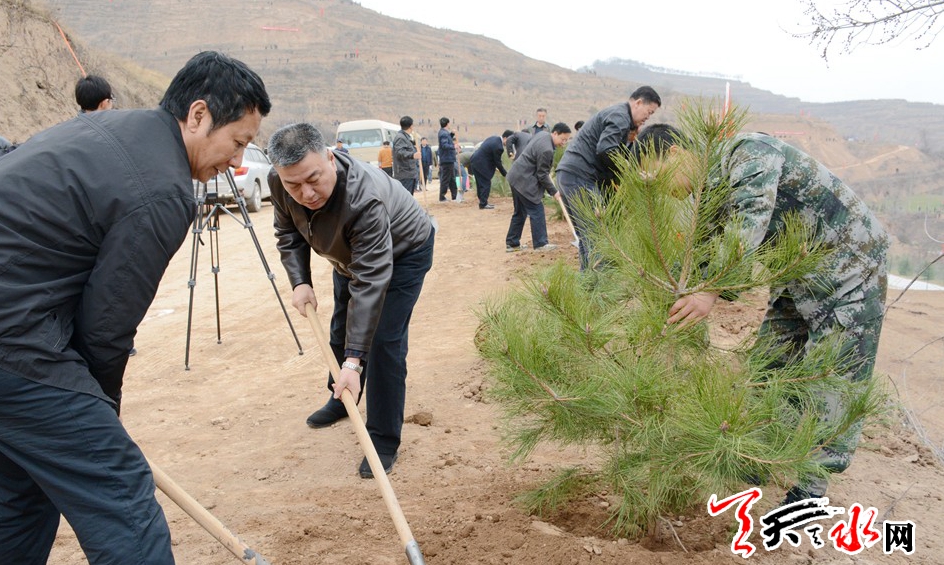 市四大班子机关干部职工、市林业局干部职工、森林武警官兵、秦州区区直60个单位共计5000多人参加了当天的义务植树活动,共栽植油松、雪松等苗木2万多棵。