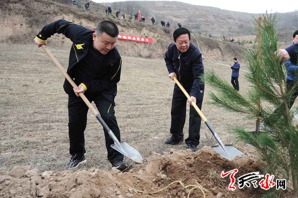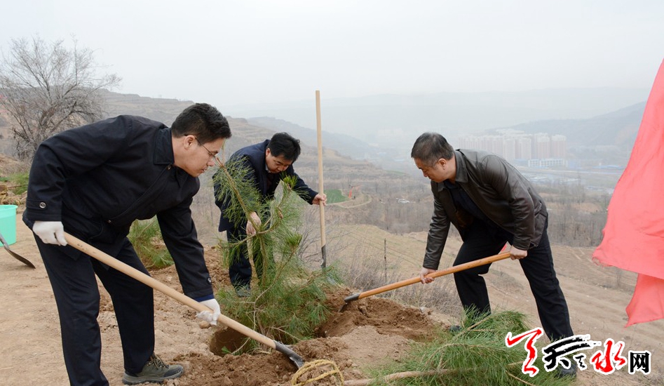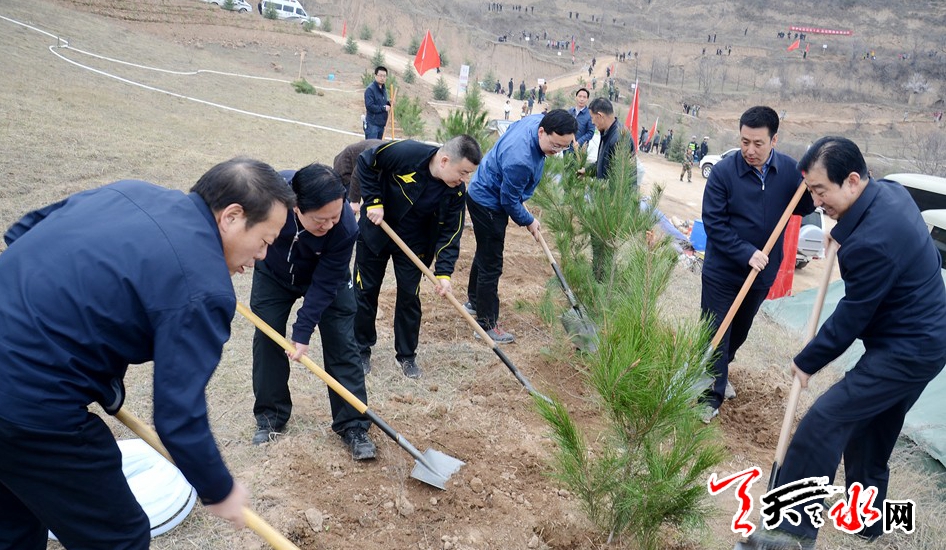 天天天水网讯(记者 周文涛 孙镇 见习记者 马凯)又是一年春光好,植树造林正当时。3月29日,王锐、杨维俊、王军、蒋晓强、蒲军、王国先、雷鸣、王正茂等市四大班子在家领导来到秦州区玉泉镇多嘉村植树点,参加义务植树活动,为天水生态文明建设,创建国家园林城市挥锨添绿。