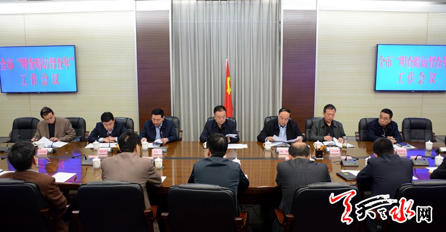 天天天水网讯【记者童强】4月6日,全市“明查暗访督查年”工作会议召开,主要任务是贯彻落实省委、省政府相关文件精神,安排部署我市“明查暗访督查年”工作,动员和引导各级各部门以高度的政治责任感、良好的精神状态、扎实有效的工作,积极迅速投入到“明查暗访督查年”工作中来,确保中央和省、市决策部署有效落实。