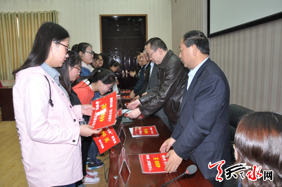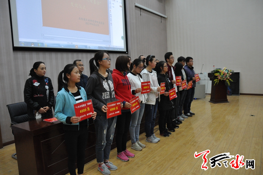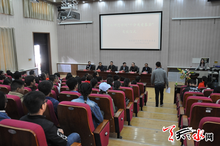 天天天水网讯(记者 刘晓亚)4月12日,“十分关爱基金”发放仪式在天水师范学院举行,天水师院100名家庭经济困难、品学兼优的在校大一学生接受了40万的十分关爱基金捐助。