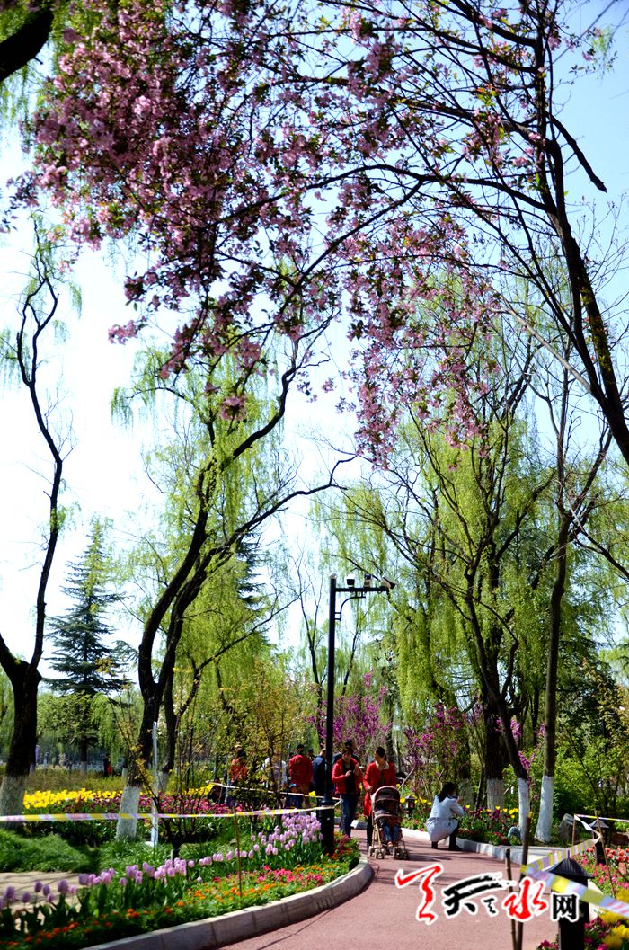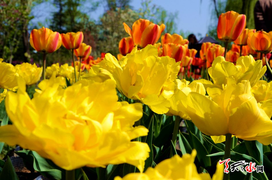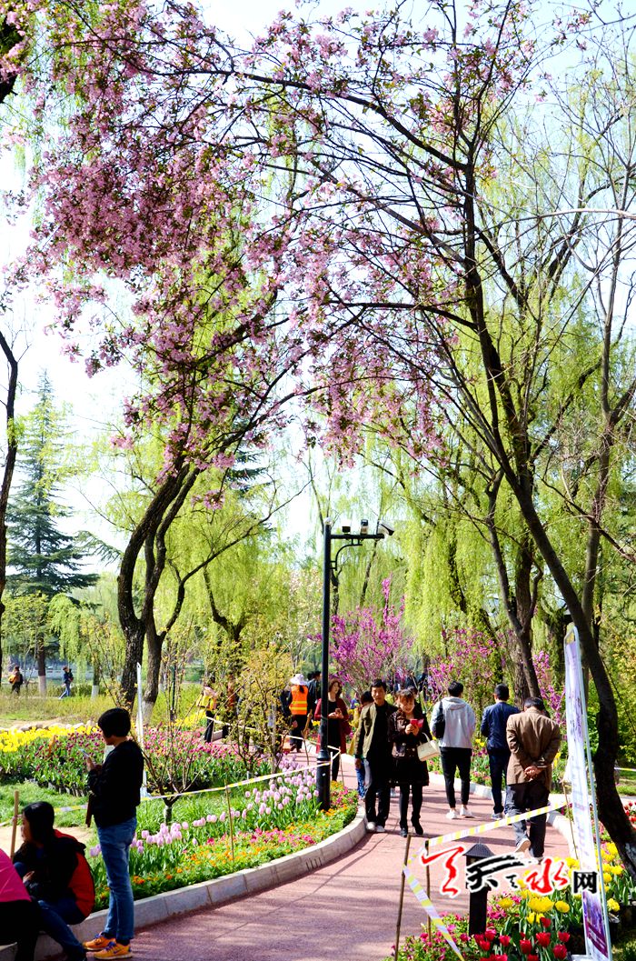 4月13日,马跑泉公园里花如海、人如潮。二十万盆郁金香盛情怒放,壮美瑰丽。一簇簇、一片片、挨挨挤挤的郁金香宛若清婉的青莲,又如出水的芙蓉,在春风里随风翻涌。或雍容华贵、或端庄素雅、或璀璨夺目。挺立着、盛开着、绽放着的郁金香宛若温婉的江南女子,以她婀娜身姿诉说着一段美丽动人的往事。