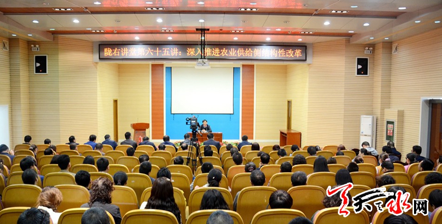 天天天水网讯【记者马哲】4月17日,“陇右讲堂”第65讲在市图书馆报告厅开讲,邀请农业部农村经济研究中心主任宋洪远教授作《深入推进农业供给侧结构性改革》的专题讲座。