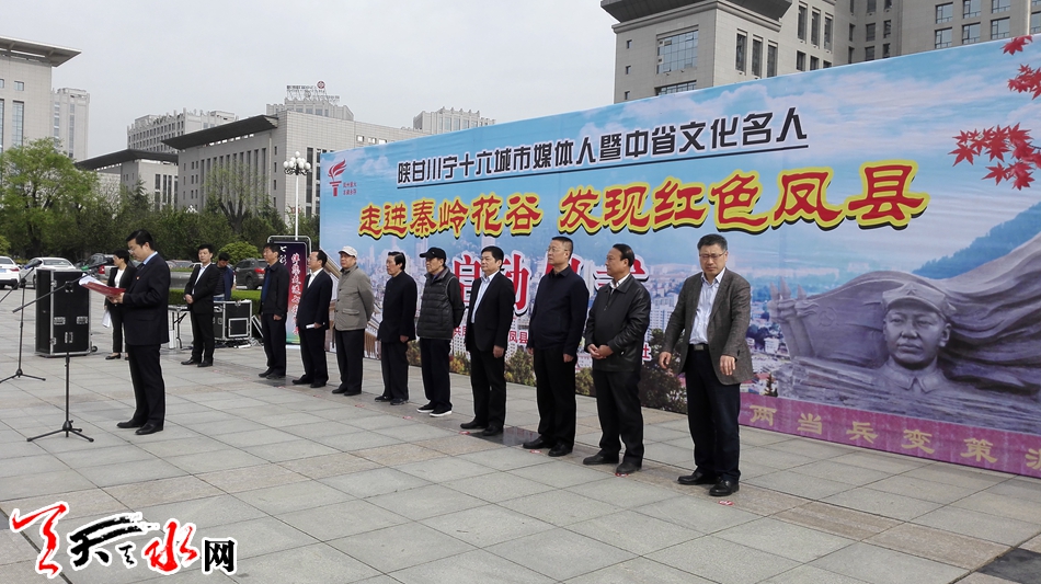 天天天水网20日9时讯【记者赵想世 杨璟】4月20日,由宝鸡日报社与凤县县委、县政府联合举办的陕甘川宁四省区十六市媒体人暨中省文化名人“走进秦岭花谷,发现红色凤县”大型主题活动在宝鸡启动,来自北京、西安的文化名人和陕甘川宁四省区十六市报社的社长总编、编辑记者参与主题活动,追寻先辈足迹、体验红色之旅。