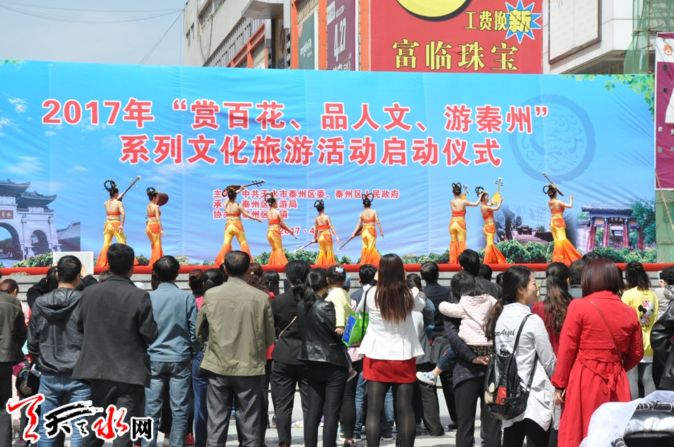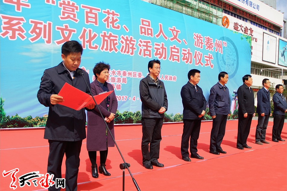 天天天水网讯(记者 刘晓亚)4月21日上午,由秦州区委、区政府主办,秦州旅游局承办,秦州各镇协办的“赏百花、品人文、游秦州”2017年系列文化旅游活动启动仪式在龙城广场举行。