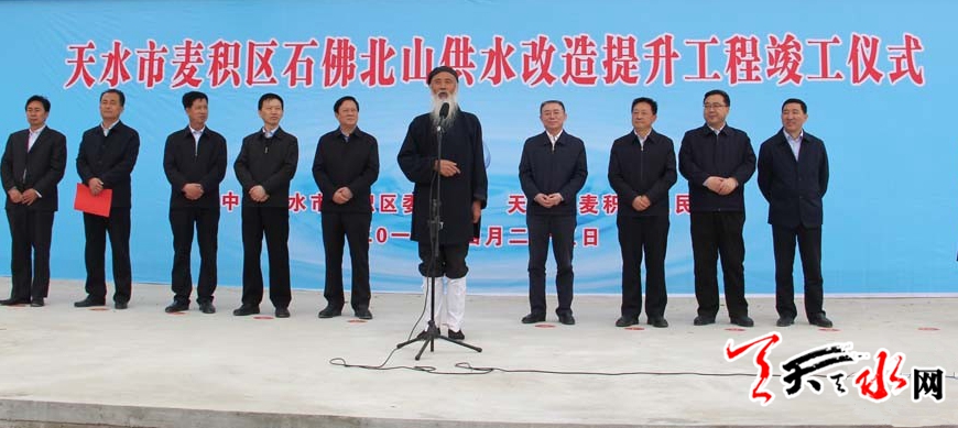 天天天水网讯 4月25日上午,由全国政协常委、全国政协民族宗教委副主任任法融捐助,市、区两级政府配套建设的麦积区石佛北山供水改造提升工程全面竣工,隆重举行竣工仪式。