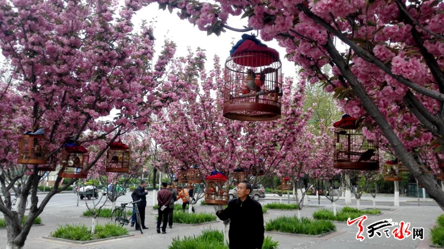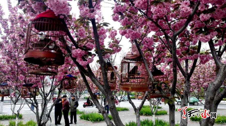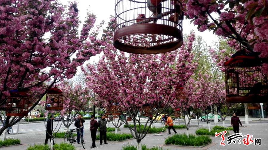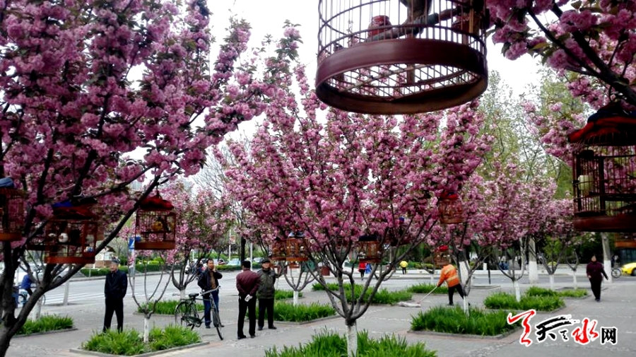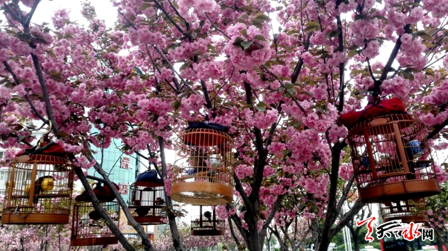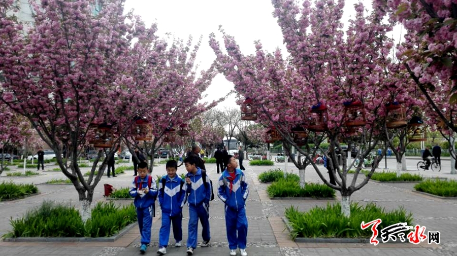 天天天水网26日9时讯【记者 张文都】4月26日,秦州区青年南路与滨河路交汇的街道旁,满树的樱花花浪翻涌,竞相怒放,休闲的市民在鸟语花香、沁人心脾的花海中享受着春日的甜蜜花香,一幅春光灿烂的美丽图景。