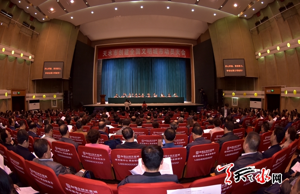 4月24日,天水市委、市政府在秦州大剧院召开全市创建全国文明城市动员大会,正式启动全国文明城市创建工作。会上,秦州区、麦积区、市建设局、市公安局、市教育局的负责同志作了表态发言。