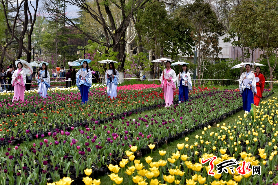 “春风相约郁金香。”4月13日,以“我和春天有个约会——触及时尚、回归自然”为主题麦积区马跑泉公园第一届郁金香主题花卉展正式开园。20余万株、11个品种的郁金香让游客大饱眼福的同时,“佳人相伴细看花开”传统汉服秀活动、“时光不老我们不散”免费补拍婚纱照活动、“时光不老我们不散”免费补拍婚纱照活动等一系列精彩纷呈的主题活动把市民带入到另一场花的盛宴。