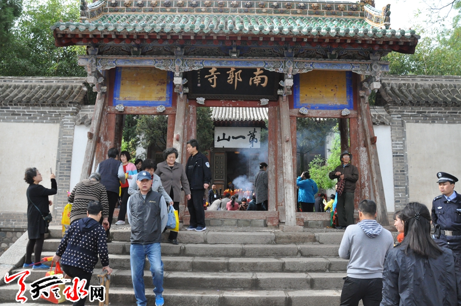 南郭寺,又名妙胜院,俗称四月八山。位于天水城南两公里处的龙王沟东侧慧音山坳,誉为天水第一名刹,每年在农历四月初八都要举行“浴佛节”法会。这一天是南郭寺一年中最隆重、最热闹的日子,四面八方的善男信女都会云集南郭寺烧香拜佛,普通市民、群众则趁这大地返青,惠风和畅的大好时节游山玩水、逛庙烧香、祈福纳祥。今年法会主体是“祈福秦州,弘法利生。”