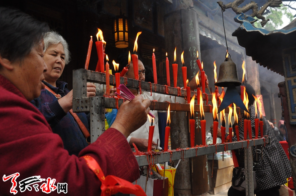 从四月初七晚上人就开始多起来,等到晚上12点交夜时分,人们竞相逛庙烧香,在佛前许愿祈祷,希望能爱情长久美满,一年平安顺利。到四月初八,整个庙会进入了高潮,遇上星期六、星期天,整个秦州区万人空巷,人们扶老携幼,呼朋引伴成群结队,涌向南郭寺,整个南郭寺沉浸在欢声笑语中。寺院僧人披着袈裟,口诵经文,祈福国家昌盛,人民安康,祈福五谷丰登,风调雨顺。