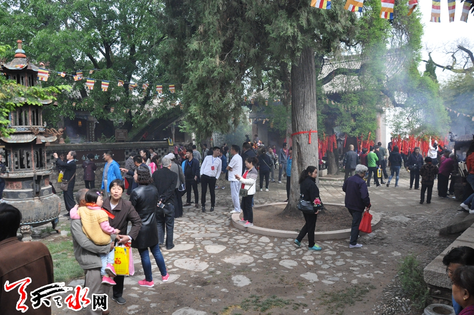 天天天水网讯(记者 刘晓亚)5月3日,农历四月初八,经过一夜暮春喜雨的洗礼,古柏参天,树木葱茏的慧音山南郭寺迎来一年一度的“浴佛节”法会。