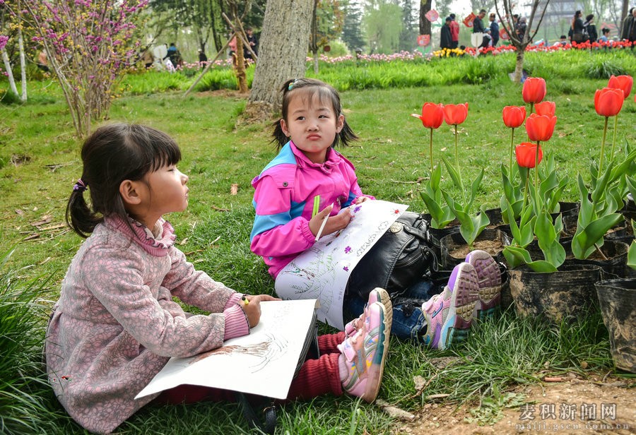 梦幻灵动如郁金香,4月22日甘肃华运环境建设工程股份有限公司与天水日报社联办的“开在童心里的郁金香”—— 小记者春季写生、朗诵、摄影大赛,天水日报 社100多名小记者身处梦幻般的花海里,用他们的奇思妙想,让郁金香插上童话的翅膀。随之而来的公园写生热,我市多家幼儿园、小学在郁金香花海写生春游,一场郁金香花事带热全城目光。