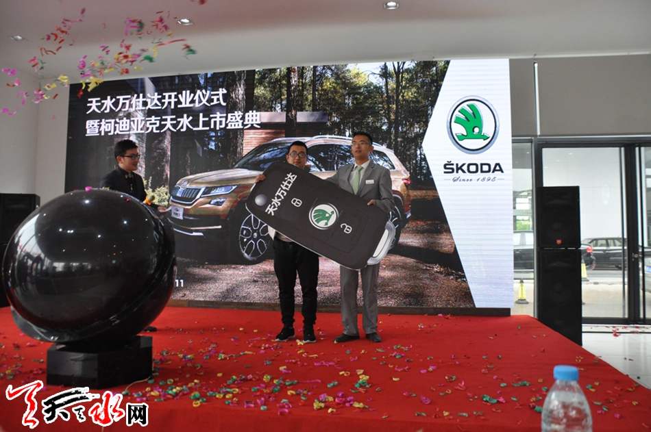 在庆典现场,天水万仕达汽车销售公司销售经理将天水市场上第一辆斯柯达的车钥匙亲自交到车主手中,天水市场上第一辆斯柯达的车主说:“斯柯达品牌大,性能好,价格接地气,这是我选择斯柯达的直接原因。”
