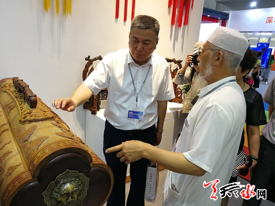 文博会上,我省以“丝路明珠 如意甘肃”为主题,搭建了甘肃综合展馆和读者文化生活馆、兰州创意文化产业园A9创意国际展示馆两个专题展馆。其中,我市民间艺术家何彦云的泥塑、甘肃莹豪玉文化发展(集团)有限公司的夜光杯和玉雕产品、竹雕大师吴云生的竹雕作品,展示了天水地域文化特色,尽显了文化魅力。