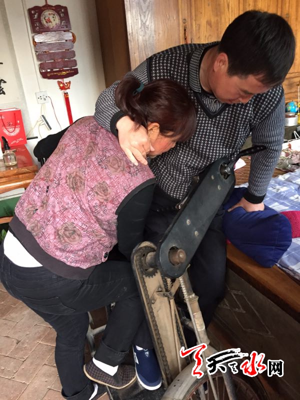 “得知孩子他爸从树上掉下来后,我不知所措。当时,医生说抓紧时间抢救,手术做了人就能好,三年后就能下地走路。”强勤玉说,丈夫从树上掉下来后,对自己的打击非常大,但医生的这句话给了她莫大的希望,她便积极配合医生救治丈夫。在她的悉心照顾下,出院一年后,张忠武能坐住了,她便将他背到院子里,扶着他用双拐练习走路。