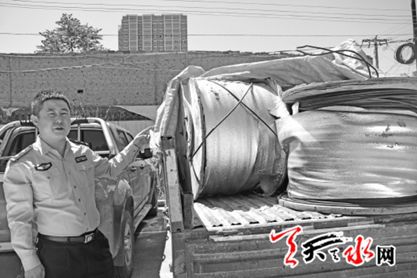 2016年2月20日9时许,甘谷县刑侦一中队民警接到某通信公司负责人报警称:在19日夜间,其负责的甘谷县大像山镇杨赵村公司内光缆线被盗,一共9盘,总价值6万余元。
