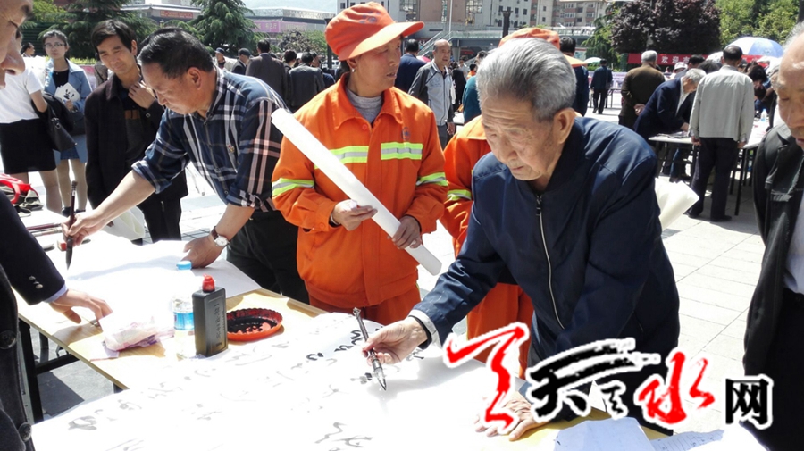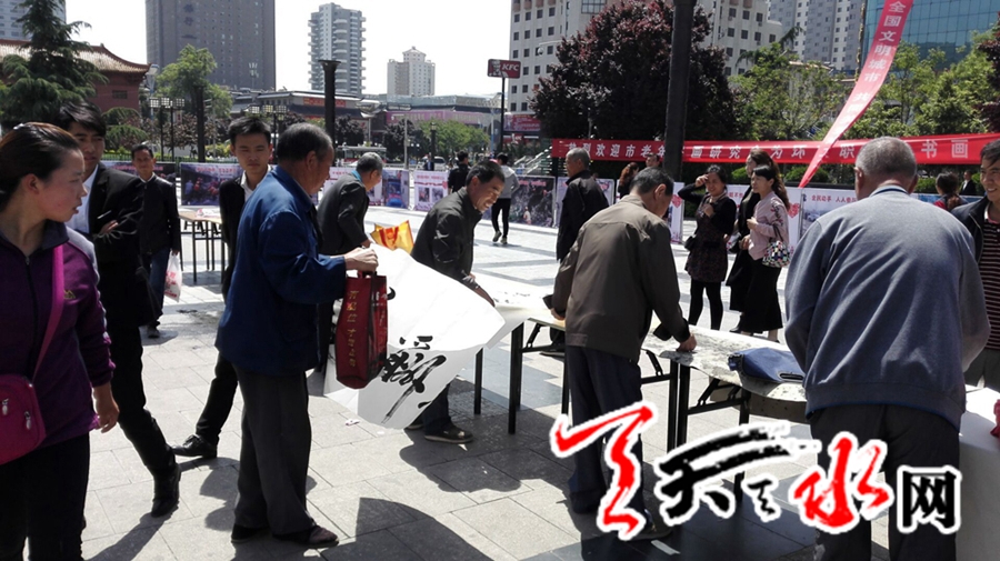 天天天水网讯(记者 刘晓亚)5月23日上午,天水市老年书画研究会和秦州区文明办共同举办的“送书画、献爱心”大型公益活动在龙城广场举行。