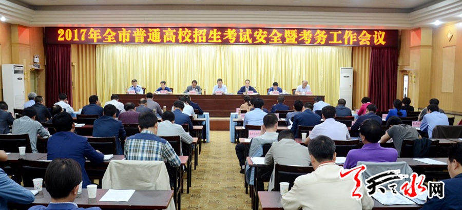 天天天水网秦州讯【记者张超】5月23日下午,2017年天水市普通高校招生考试安全暨考务工作会议在迎宾馆召开。