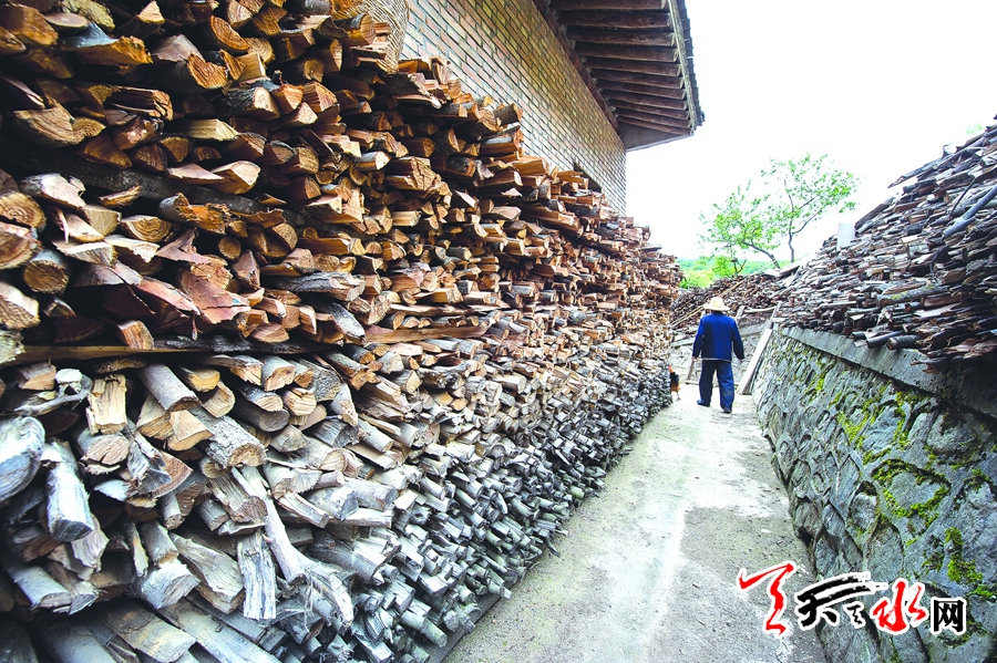 老人劈的柴码成了小山。