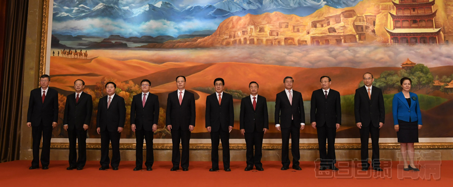 新当选的中国共产党甘肃省第十三届委员会常务委员会委员与新闻记者见面,他们是:林铎、唐仁健、孙伟、李荣灿、刘昌林、梁言顺、马世忠、黄强、宋亮、陈青(女)、王嘉毅。
