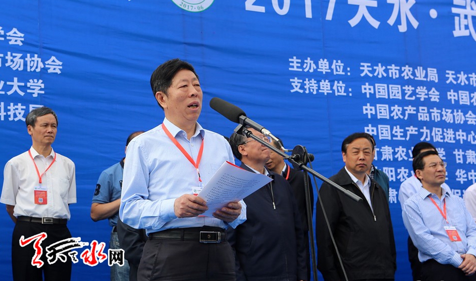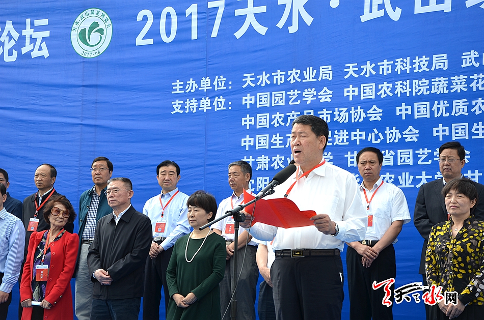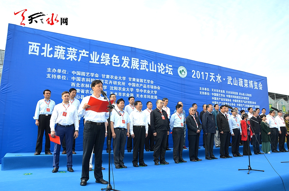 天天天水网讯(记者小军 文都 杨旭 小龙)6月1日,武山蔬菜产业科技示范园区果蔬飘香、人潮涌动,由中国园艺学会、甘肃农业大学、甘肃省园艺学会和天水市农业局、科技局和武山县政府分别主办的西北蔬菜产业绿色发展武山论坛、西部特色农业发展智库对话和2017天水·武山蔬菜博览会在这里隆重开幕。