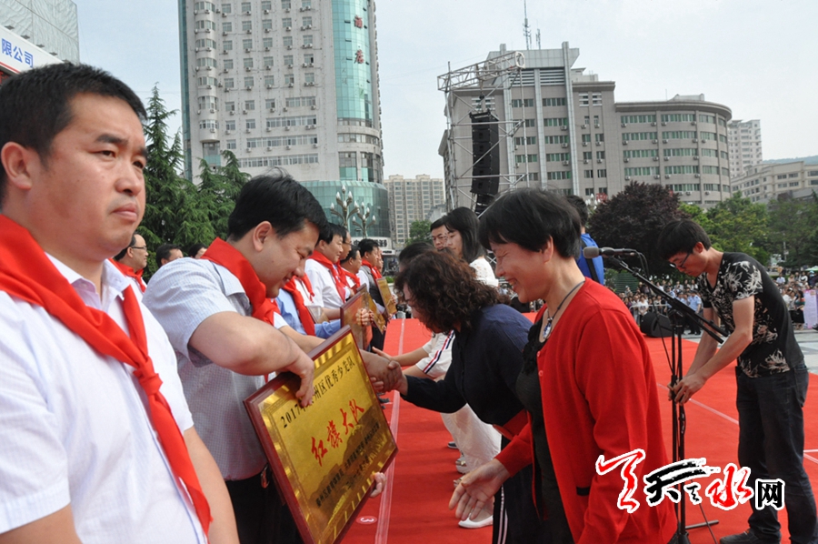 天天天水网讯(记者 刘晓亚)6月1日上午,由中共天水市秦州区委、区政府主办,秦州区教体局、共青团秦州区委和秦州区少工委联合承办的“红领巾相约中国梦”庆“六一”主题活动在龙城广场举行。