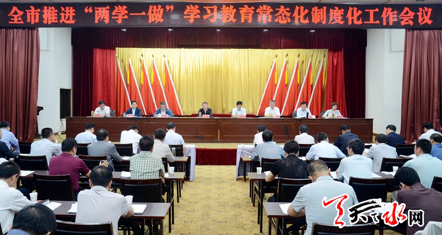 天天天水网讯【记者王晓馨】6月7日,天水市委召开全市推进“两学一做”学习教育常态化制度化工作会议。市委书记王锐在会上强调,要深入学习贯彻习近平总书记关于推进“两学一做”学习教育常态化制度化的重要指示精神,全面落实中央、省委有关部署要求,提高政治站位,强化责任担当,突出真学实做,扎实推进“两学一做”学习教育常态化制度化,为全市各项事业持续健康发展提供坚强组织保证。
