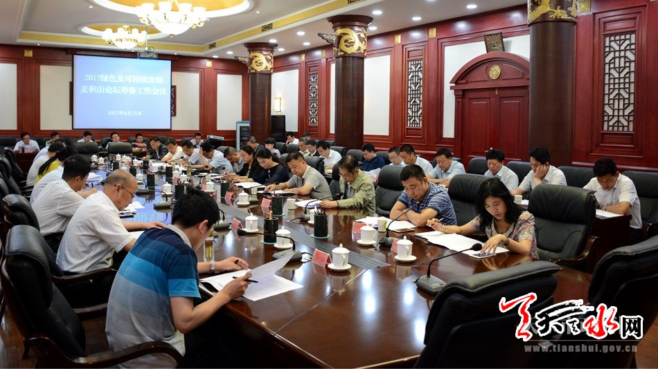 天天天水网讯【记者陈娟】6月15日,天水市政府召开2017绿色及可持续发展麦积山论坛筹备工作会议,听取论坛筹备工作进展情况汇报,对论坛筹备各项工作进行再动员、再部署、再推进。市委常委、副市长李晓东出席会议。