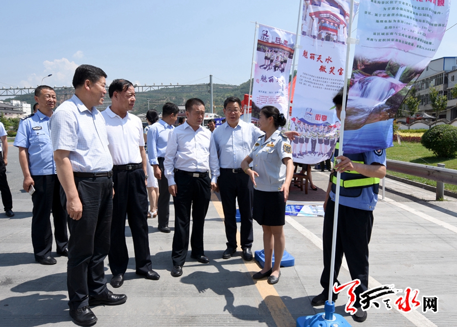 督察中,王锐一行先后来到天水高速公路西出口、天水宾馆、天水会展中心、伏羲广场、伏羲庙,重点对节会接待线路及重点路段环境整治、氛围营造、接待服务及公祭伏羲大典现场环境布置、大典仪式筹备、安全保卫等各项节会筹备工作进展情况进行了现场督察,听取了情况汇报,并就进一步做好筹备工作提出了指导意见。
