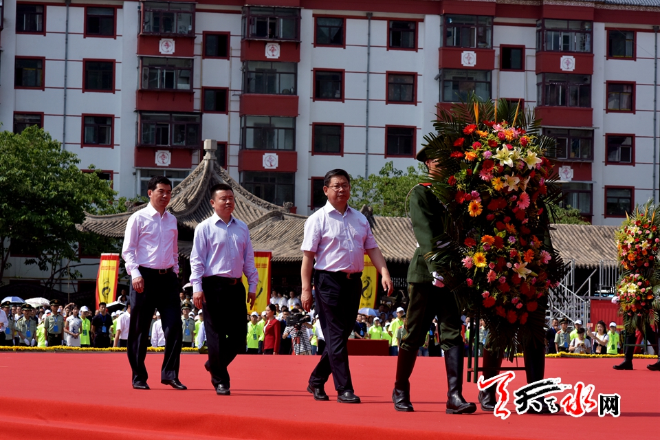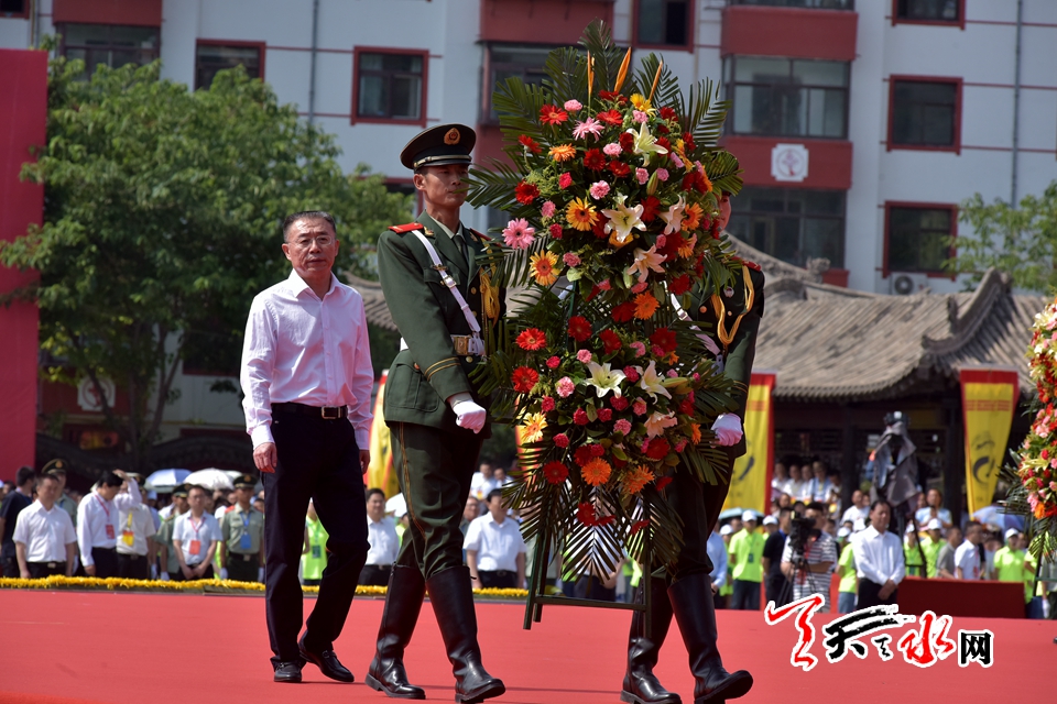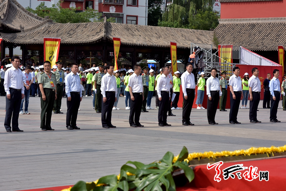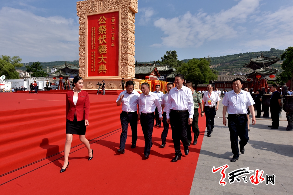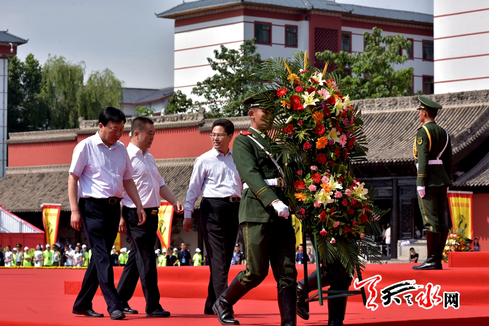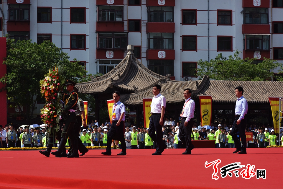 第六项是敬献花篮、谒庙祭祖。天水市部分领导代表社会各界,向伏羲像敬献花篮。