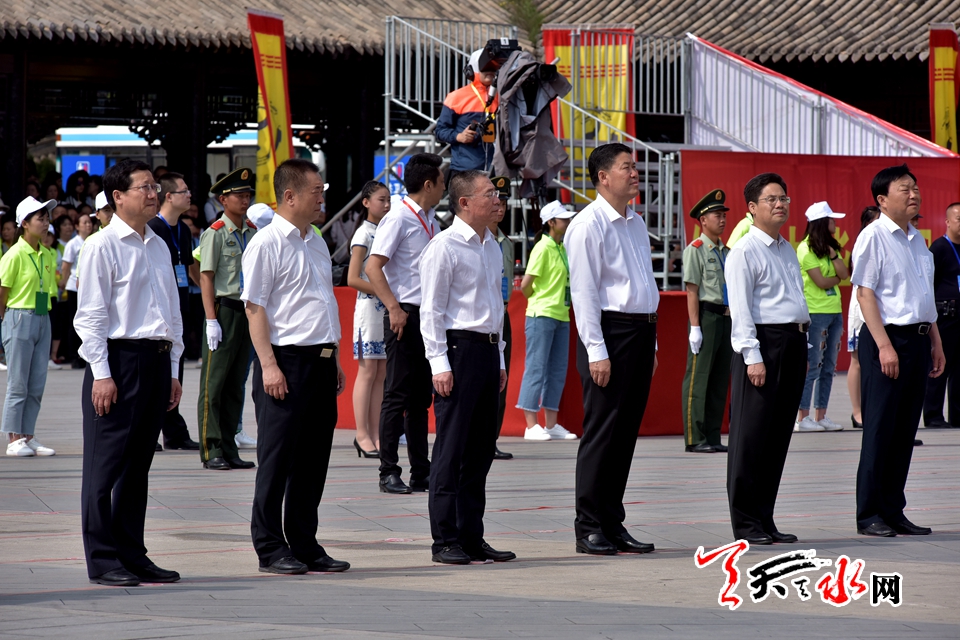 天天天水网 (记者何永德 杨旭)为确保2017(丁酉)年公祭伏羲大典顺利成功进行。6月20日上午,公祭伏羲大典预演在伏羲广场举行。市领导王锐、王军、蒋晓强、王国先、雷鸣、蒲朝晖、张建杰、郝文杰、程伟东、王振宇、唐宏伟、逯克宗、屈光平等出席预演活动。