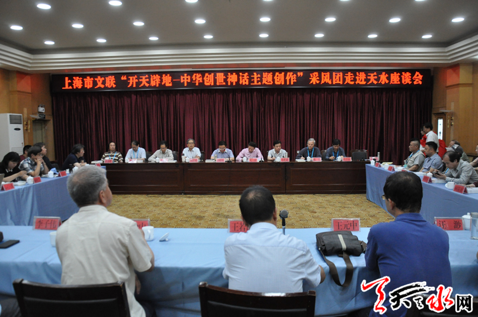 天天天水网讯(记者 刘晓亚)6月21日下午,上海市文联“开天辟地--中华创世神话主题创作”采风团走进天水座谈会在迎宾馆召开。