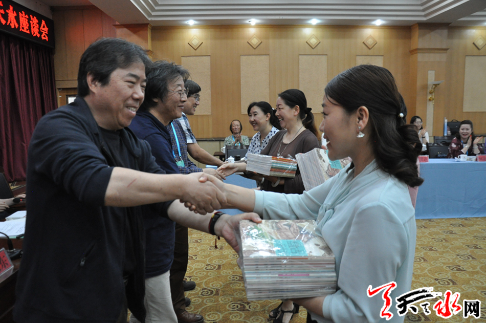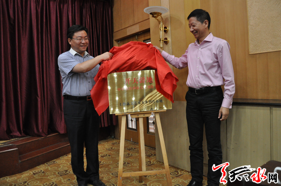 座谈会上,上海市文联向天水市文联赠送了《开天辟地--中华创世神话连环画绘本》,同时还举行了“上海市文艺家天水创作基地”揭牌仪式。