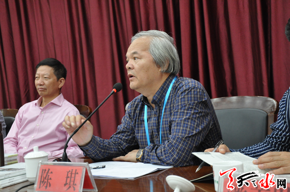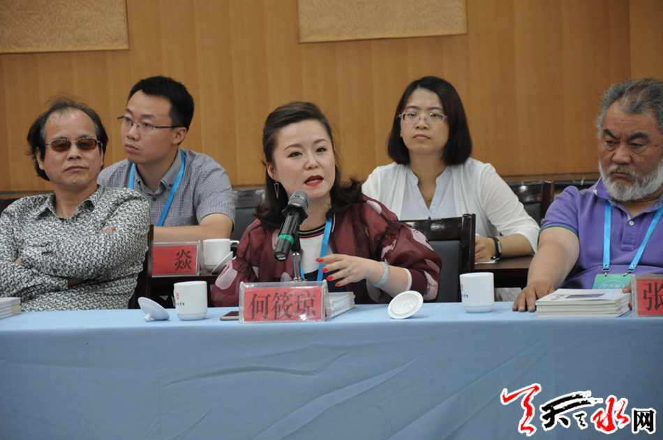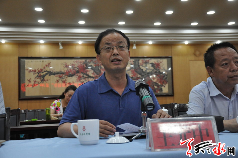 上海市文联党组书记、专职副主席尤存就此次采风的目的、意义以及“开天辟地--中华创世神话主题创作”整体工程做了详细的介绍。采风团的专家学者和天水的学者专家就“开天辟地--中华创世神话主题创作”以及天水地区流传的神话传说、历史故事做了深入细致的交流发言。