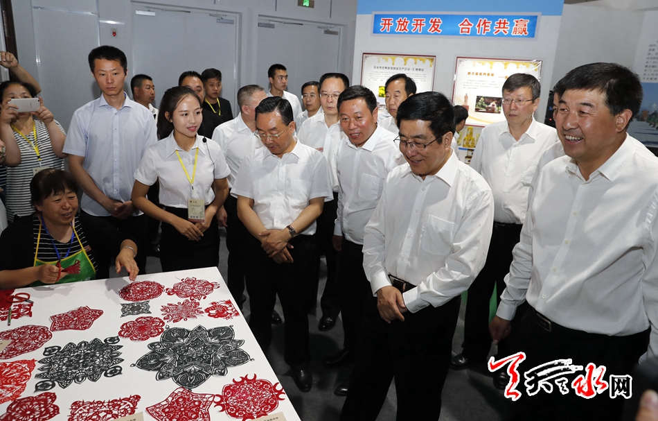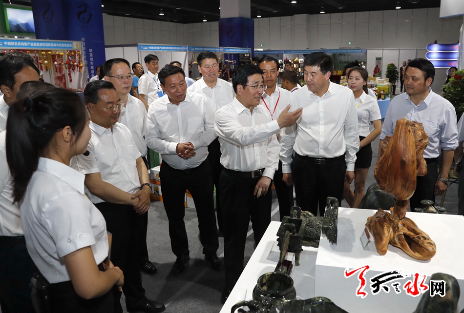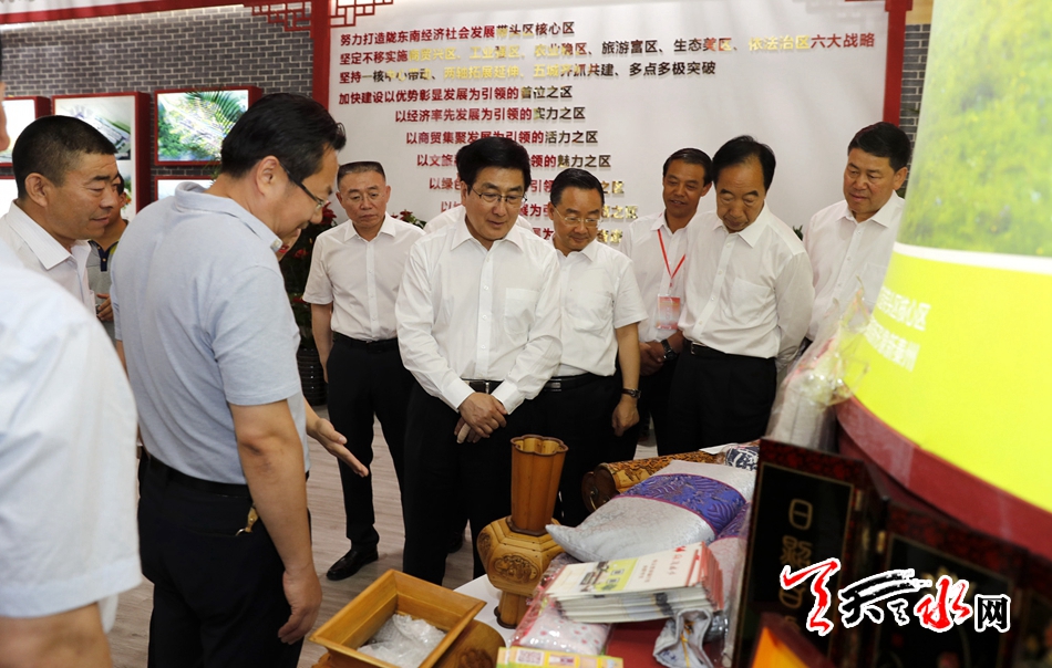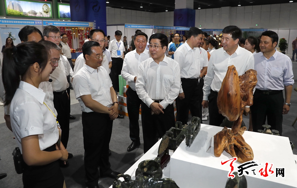 6月22日,参加完公祭伏羲大典后,省委书记、省人大常委会主任林铎,省委副书记、省长唐仁健来到天水会展中心,参观了中国中西部名优特新产品暨旅游区域联盟城市旅游商品展。省委副书记孙伟,省委常委、秘书长王嘉毅,省人大常委会副主任周多明,省政府秘书长常正国,以及市领导王锐、王光庆、王军、蒋晓强、李晓东、刘天波等一同参观。 全媒体记者 王晓馨 摄