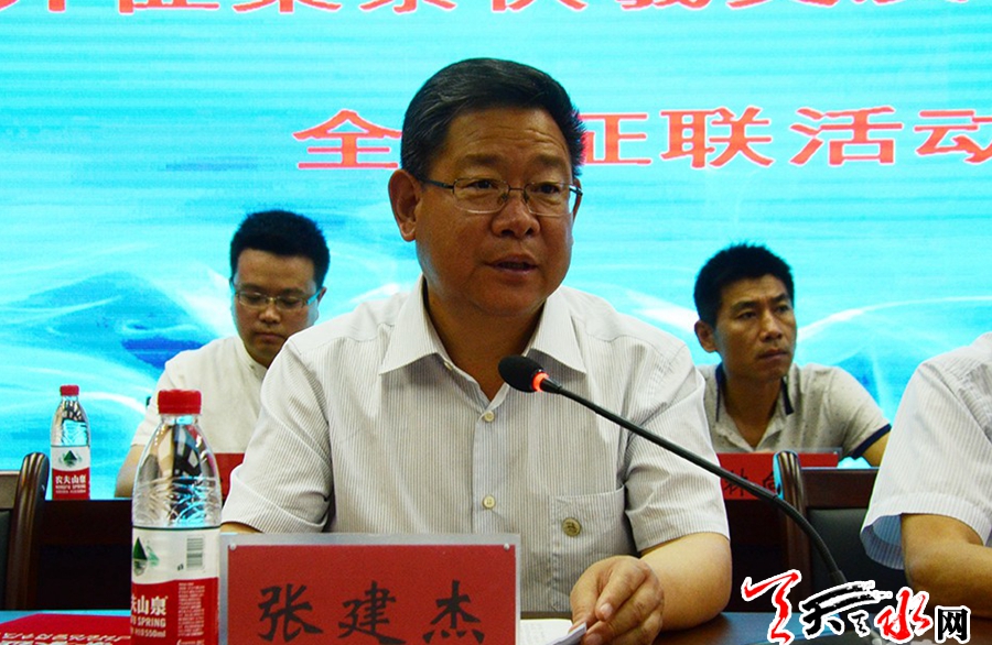 张建杰在致辞中说,为提升公祭伏羲大典的知名度和影响力,今年我市面向社会公开征集“祭中华人文始祖伏羲文”,并同时开展“伏羲颂”天水伏羲庙征联活动,引起了全国各地和海内外华人的高度关注和广泛参与,通过严格评选,评选出了一批优秀佳作。他希望通过此次活动的举办,能吸引更多的团体和人士,共同深入研究伏羲文化,共同传承弘扬伏羲文化,共同推动伏羲文化走向大众、走向世界。