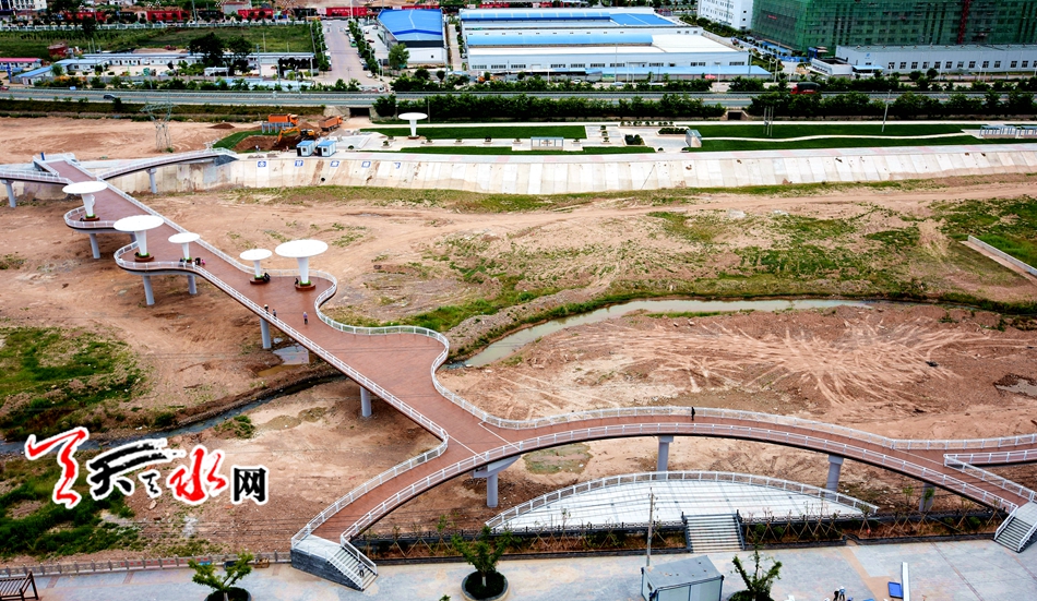 秦州区藉河生态公园人行景观桥目前已建成。该桥设计超前、构思精巧,集艺术性、观赏性、实用性于一体,建成后极大方便了山水嘉园及附近居民的出行。全媒体记者 李旺旺 摄