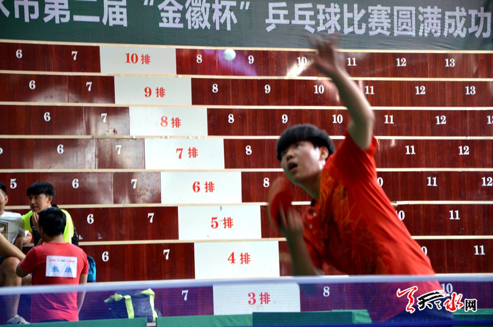 由天水市乒乓球协会、金徽酒股份有限公司主办,天水市体育中心协办的为期三天的“金徽杯”乒乓球赛,旨在加强我市乒乓球爱好者的交流和友谊,提高竞技水平和综合素质,展现我市运动健儿的风采,从而达到增强体质、振奋精神、凝聚力量、增进友谊,共同推动我市全民健身运动的全面发展。