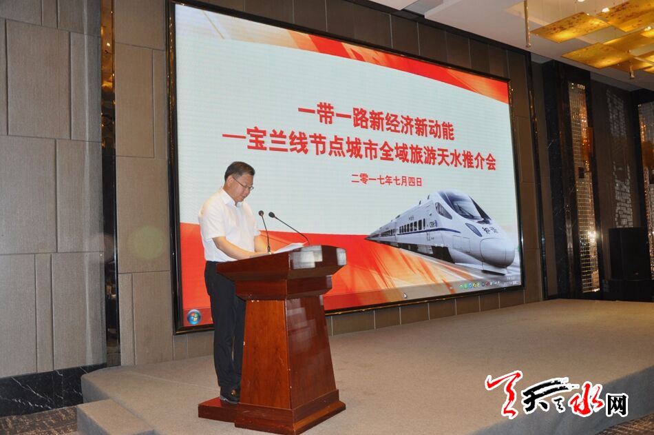 天天天水网讯【全媒体记者马放】7月4日,天水市召开“一带一路”新经济新动能——宝兰线节点城市全域旅游天水推介会,向来自陕西、新疆、广东、重庆等7个省区市的20余家媒体推介了天水旅游资源和产品。针对即将开通的宝兰高铁,推出了一系列旅游优惠措施,吸引各地游客“乘高铁游天水”。