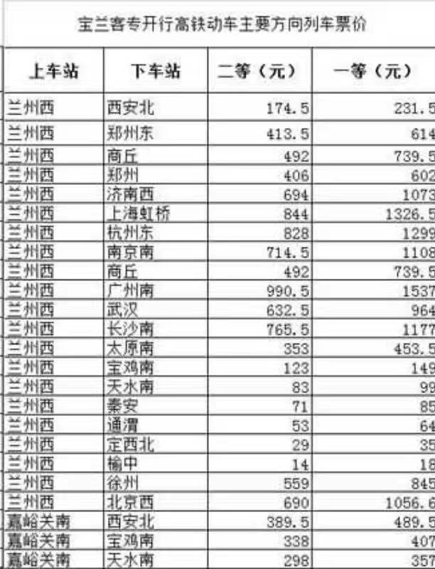 以下是兰州至各城市票价,那天水至这些城市票价亲们可以算算啦!