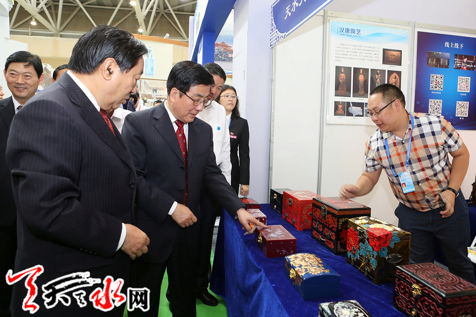 7月6日上午,第23届兰洽会正式开幕之前,全国政协副主席齐续春,省委书记、省人大常委会主任林铎,省委副书记、省长唐仁健及市领导王锐、王军、赵卫东、雷鸣、温利平、张克强、刘天波、何东等巡察了天水展馆。全媒体记者 郝勤学 摄
