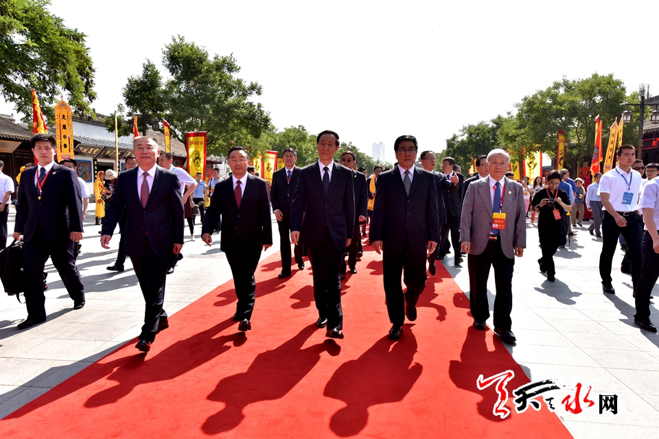 6月22日上午9时50分,在天水伏羲庙和台湾台北市同步举行了主题为“传承伏羲文化 弘扬中华文明”的2017(丁酉)年公祭中华人文始祖伏羲大典,这是第四次海峡两岸共祭伏羲,表达了全体中华儿女对人文始祖伏羲创世功绩的崇高敬仰和无限尊崇。