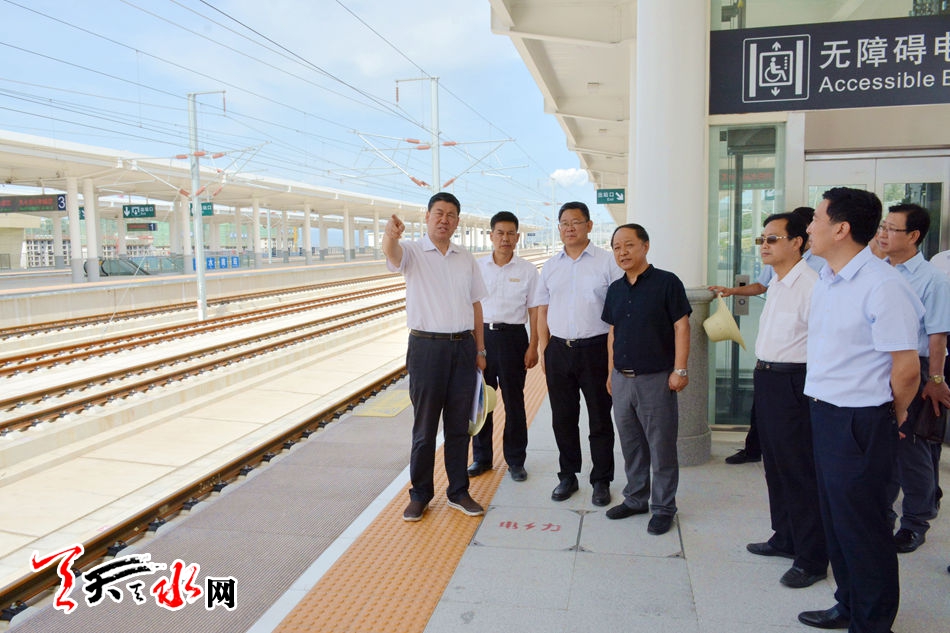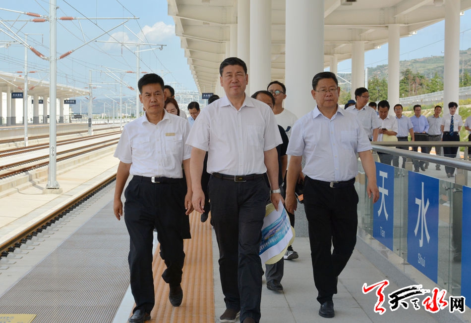 检查中,王军一行先后实地察看了天水高铁南站综合交通枢纽及站前广场、站台及相关配套设施建设情况,详细询问了高铁开通运营准备情况,并听取了市交通运输等相关部门的汇报。